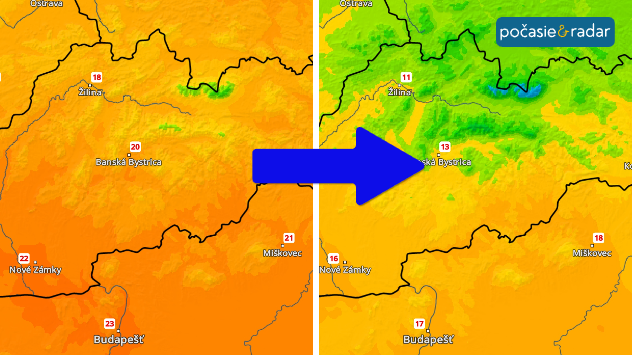Ochladenie medzi nedeľou a pondelkom bude podľa nášho teplotného radaru citeľné,asi o cca 5 až 7 °C.