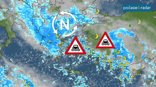 U nás je vďaka níži nad Stredomorím veľmi až mimoriadne teplo, v mieste jej stredu zas mimoriadne daždivo. Medzi dovolenkármi obľúbená destinácia - Grécko - zápasí s povodňami.