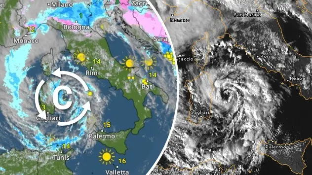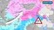 Mapa Turecka s výskytom sneženia a dažďa, najmä na východe krajiny, vyznačená aj turecká vlajka