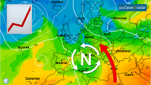 Kým v piatok v noci i cez deň zažijeme vrchol ochladenia s nízkymi dennými teplotami a mrazmiaj na nížinách, hneď nasledujúci deň sa začne situácia pomaly meniť. Níž nad juhozápadným Ruskom, čím sa oblasť vysokého tlaku rozloží nad severnú a východnú Európu. K slovu sa dostane nízky tlak nad centrálnym Stredomorím. Napr. do Talianska, Nemecka či Rakúska prinesie aj výdatné zrážky, k nám však doveje „len“ teplejší vzduch od juhozápadu až juhu. Od soboty budeme preto každým dňom pozorovať pozvoľné oteplenie približne o 2 °C. Kým na začiatku víkendu sa teploty budú pohybovať medzi 8 až 16 °C, v utorok sa vráti takmer letný typ počasie s teplotami už na úrovni cca 14 až 22 °C.
